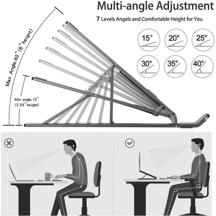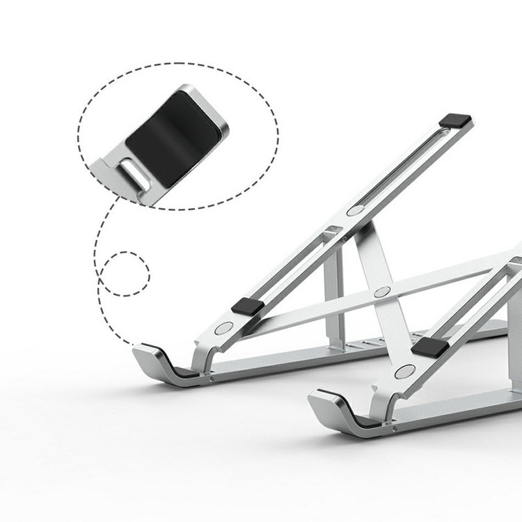 این کالا با برخورداری از یک طراحی بی نظیر و جنس آلومینیوم سبک و مستحکم برای کار مداوم با لپ تاپ بسیار مناسب است. این محصول دارای طراحی منحصر به فرد می باشد که قابلیت جمع شدن دارد و به راحتی قابل حمل و جابجایی می باشد و دیگر نگران جاگیری پایه لپ تاپ خود نباشید، زیرا اکثر پایه های موجود در بازار به دلیل ابعاد بزرگ آنها توانایی حمل و جابجایی را از شما میگیرند. همچنین به دلیل قابلیت تنظیم ارتفاع و زاویه برای کار روبروی لپتاپ در ساعات طولانی دیگر مشکل خستگی ناحیه گردن و شانه پیدا نمی کنید.